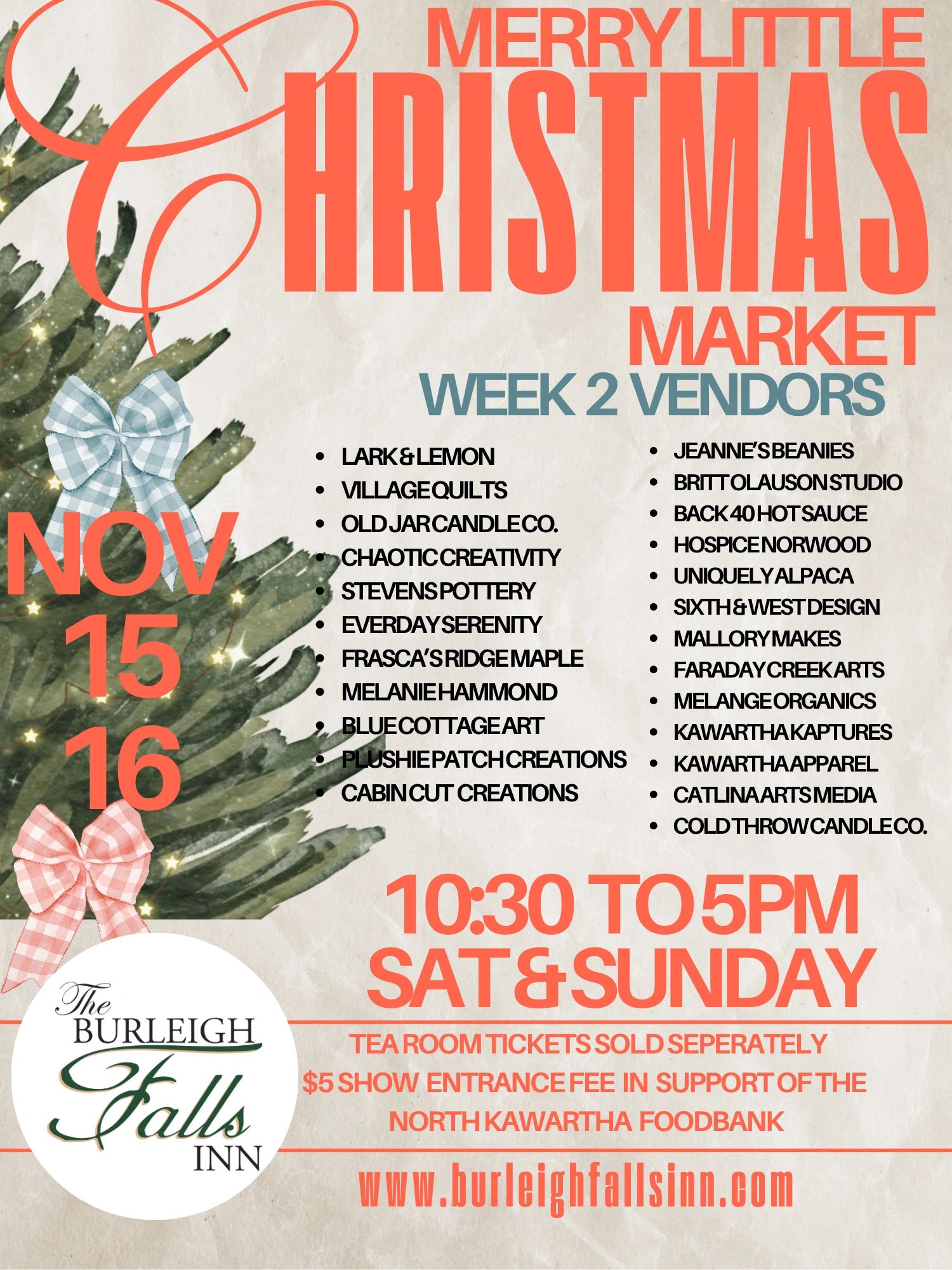 As part of our 2 Weekends of Christmas magic, combine a trip to our Vendor's Market with a trip to our Christmas Tea Room.